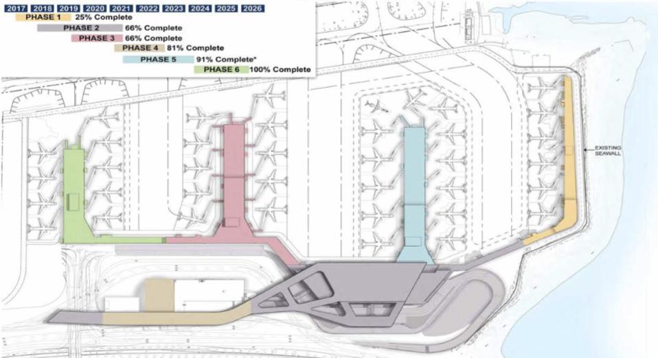 Mais un plan accéléré pourrait voir plusieurs halls réaménagés en même temps puisque Delta na pas besoin de préserver la capacité de la porte. Le schéma ci-dessous montre le nouveau terminal en jaune superposé sur une image satellite de lancien terminal.