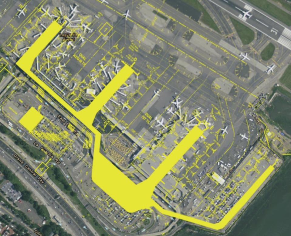 Le réaménagement de LaGuardia est un « projet massif sur un terrain de la taille dun timbre-poste », a déclaré Jacobson. Il couvre 37 portes sur quatre halls.
